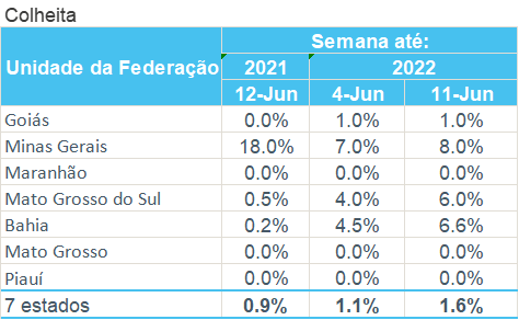 據(jù)巴西農(nóng)業(yè)部下屬的國(guó)家商品供應(yīng)公司CONAB,截至6月11日,巴西棉花收割率為1.6%,上周為1.1%,去年同期為0.9%。