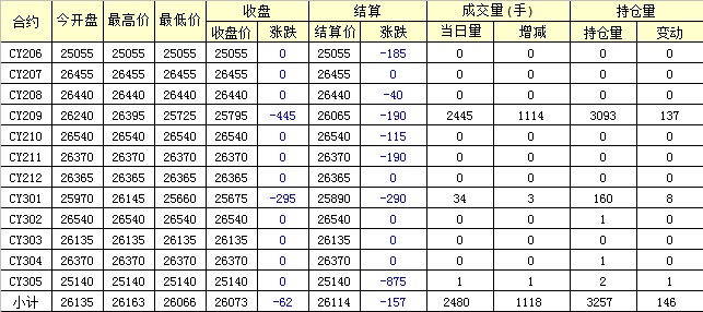 主力CY209合約當(dāng)日交易走勢(shì)