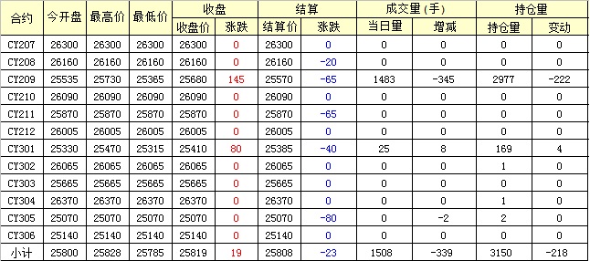 主力CY209合約當(dāng)日交易走勢