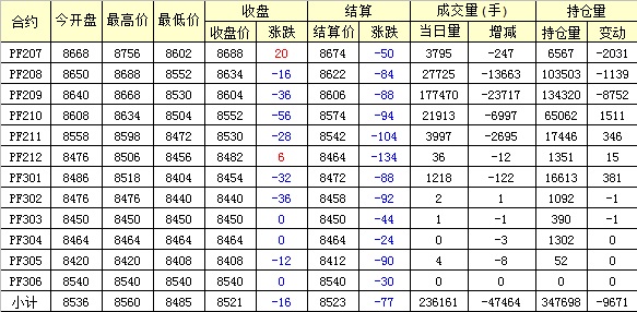 主力PF209合約當(dāng)日交易走勢