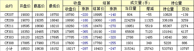 主力CF209合約當(dāng)日交易走勢(shì)圖