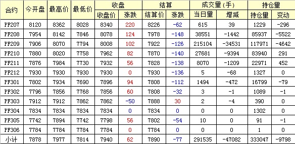 主力PF209合約當(dāng)日交易走勢(shì)
