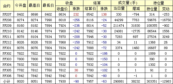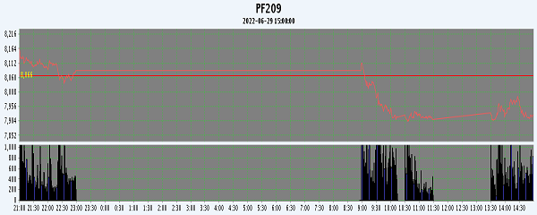 主力PF209合約當日交易走勢