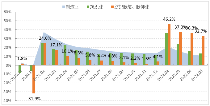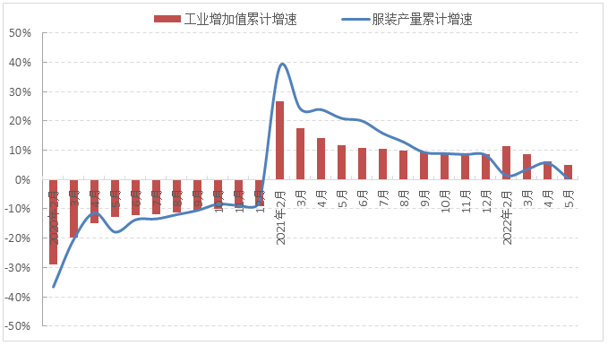 圖1 2022年1-5月服裝行業(yè)生產(chǎn)增速情況