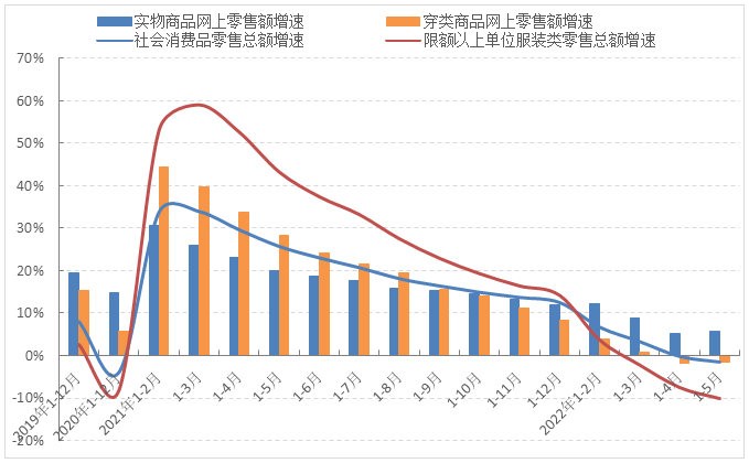 圖2 2022年1-5月國內(nèi)市場服裝銷售增速情況