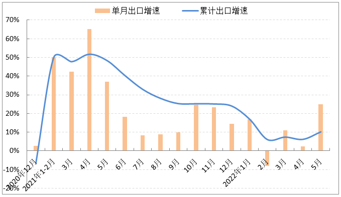 隨著穩(wěn)外貿(mào)政策持續(xù)加碼及企業(yè)復(fù)工復(fù)產(chǎn)穩(wěn)步推進(jìn),在國際市場需求穩(wěn)定恢復(fù)、物流堵點逐步打通及前期積壓訂單加速釋放等因素的有利帶動下,我國服裝出口增速大幅提升,重回兩位數(shù)增長空間。據(jù)中國海關(guān)數(shù)據(jù),5月服裝及衣著附件出口151.99億美元,同比增長24.9%,增速比4月提升22.5個百分點;1-5月我國累計完成服裝及衣著附件出口622.16億美元,同比增長10.2%,增速比1-4月提升4個百分點。
