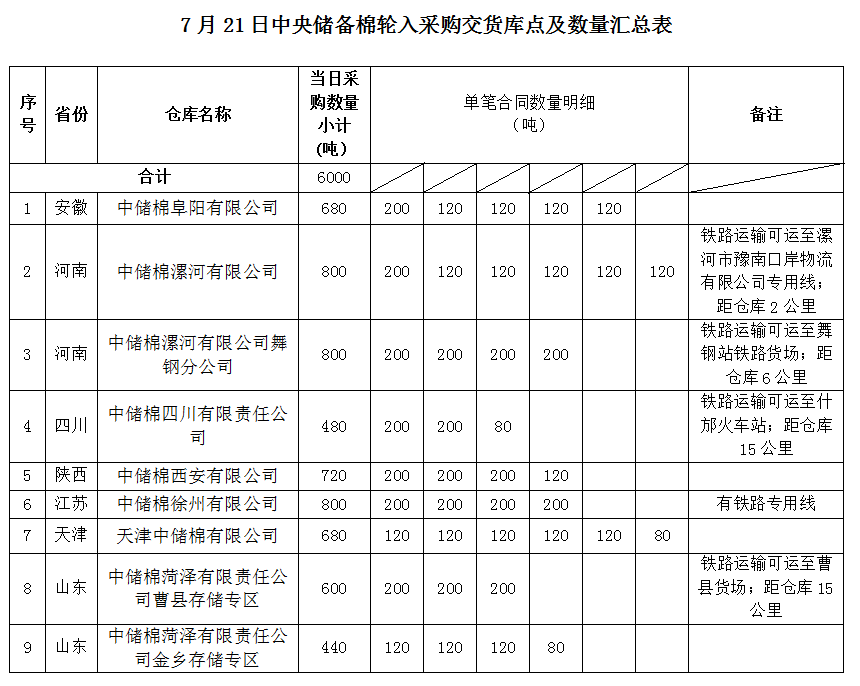 中國儲備棉管理有限公司定于2022年7月21日采購棉花6000噸(公定重量)。具體庫點及數(shù)量如下: