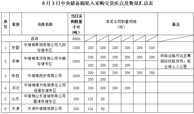 中國儲備棉管理有限公司定于2022年8月3日采購中央儲備棉6000噸(公定重量)。具體庫點(diǎn)及數(shù)量如下: