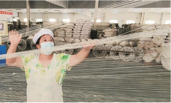 8月1日,位于鐵門關(guān)經(jīng)濟技術(shù)開發(fā)區(qū)的新疆極限天霖紡織有限公司生產(chǎn)車間內(nèi),工人在生產(chǎn)棉紗。今年1-7月公司生產(chǎn)毛巾1200萬條、棉紗1500余噸,實現(xiàn)產(chǎn)值7000萬元,同比增長15%。