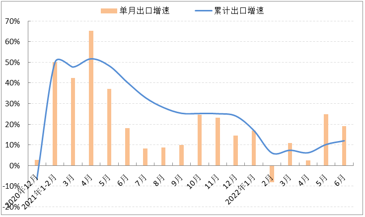 上半年,在國際市場需求穩(wěn)定恢復(fù)、強韌的產(chǎn)業(yè)鏈優(yōu)勢、企業(yè)快速復(fù)工復(fù)產(chǎn)及穩(wěn)外貿(mào)政策落地顯效等積極因素的推動下,我國服裝出口在2021年高基數(shù)的基礎(chǔ)上繼續(xù)保持平穩(wěn)增長。據(jù)中國海關(guān)數(shù)據(jù),1-6月我國累計完成服裝及衣著附件出口801.7億美元,同比增長12%,增速比1-5月提升1.8個百分點;6月服裝及衣著附件出口180.4億美元,同比增長19.1%。