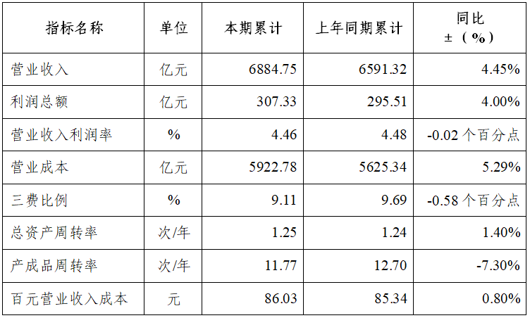 表1 2022年1-6月服裝行業(yè)主要效益指標情況