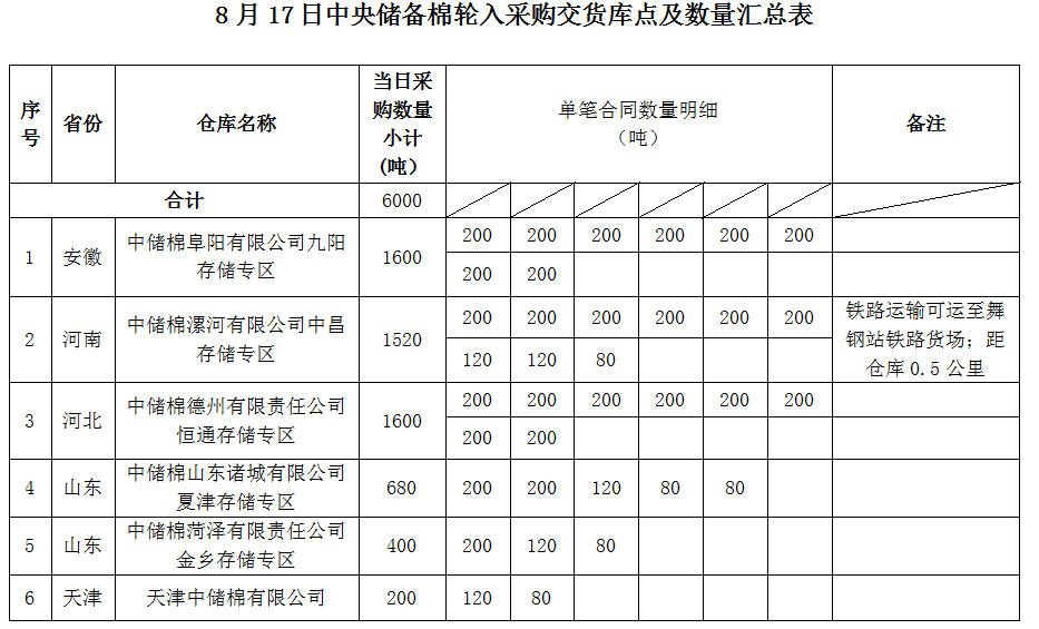 中國儲備棉管理有限公司定于2022年8月17日采購棉花6000噸(公定重量)。具體庫點及數(shù)量如下: