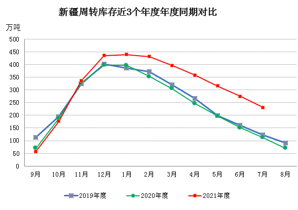 二、新疆棉花周轉(zhuǎn)庫存大幅減少