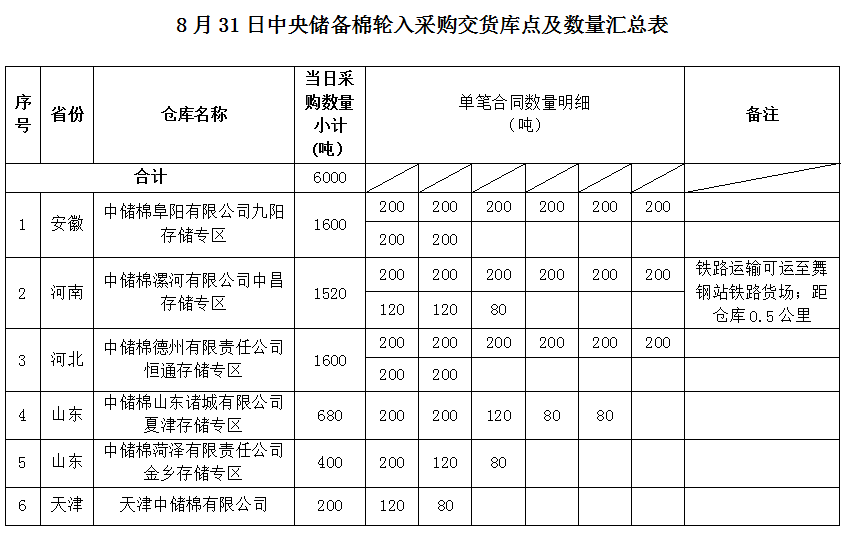 中國儲備棉管理有限公司定于2022年8月31日采購棉花6000噸(公定重量)。具體庫點及數(shù)量如下: