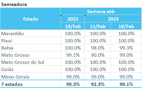 據(jù)巴西農(nóng)業(yè)部下屬的國(guó)家商品供應(yīng)公司CONAB,截至2月18日,巴西棉花播種率為99.1%,上周為92.3%,去年同期為99.3%。