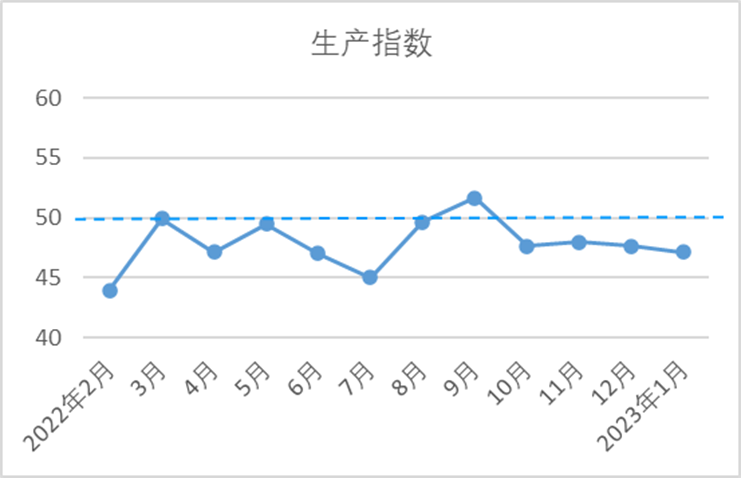 1月,企業(yè)經(jīng)營(yíng)指數(shù)為45.94,較12月下降3.59。當(dāng)月市場(chǎng)價(jià)格雖有回升,但銷(xiāo)售形勢(shì)不及上月,企業(yè)利潤(rùn)水平未能得到有效改善,虧損面繼續(xù)增加,經(jīng)營(yíng)壓力較大。在國(guó)家調(diào)整優(yōu)化疫情防控措施后,企業(yè)及時(shí)調(diào)整經(jīng)營(yíng)策略,力保生產(chǎn)經(jīng)營(yíng)能夠平穩(wěn)運(yùn)行。當(dāng)月,主營(yíng)業(yè)務(wù)收入指數(shù)為45.10,較12月下降5.13;利潤(rùn)總額指數(shù)為46.78,較12月下降2.05。