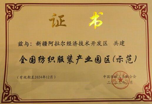 3月15日,在四川省三臺縣召開的2023年全國紡織服裝產(chǎn)業(yè)園區(qū)工作會議上,阿拉爾經(jīng)濟技術(shù)開發(fā)區(qū)(以下簡稱經(jīng)開區(qū))被中國紡織工業(yè)聯(lián)合會認(rèn)定為“全國紡織服裝產(chǎn)業(yè)示范園區(qū)”并授牌。