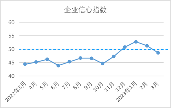 3月,企業(yè)信心指數(shù)為48.68,較2月下降2.62,低于臨界點。當(dāng)前,全球金融市場風(fēng)險上升,國際貿(mào)易環(huán)境復(fù)雜多變,外貿(mào)市場存在較大不確定性。國內(nèi)經(jīng)濟(jì)運(yùn)行雖開局良好,但市場需求制約不足仍然存在,紗布產(chǎn)品價格處于下降趨勢,企業(yè)效益恢復(fù)面臨困難,多數(shù)企業(yè)寄希望于淡季來臨前下游需求能有所好轉(zhuǎn)。