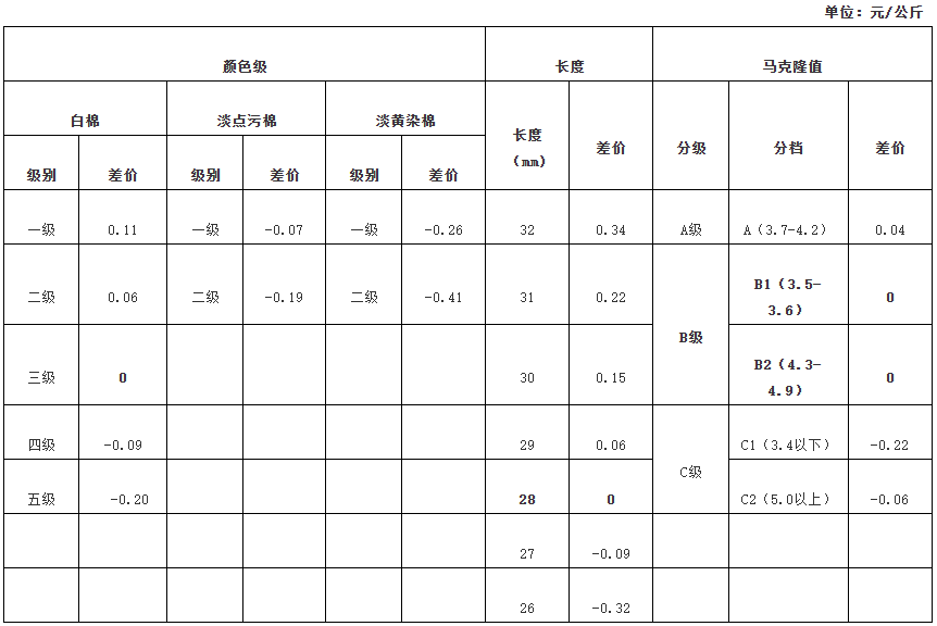 依據(jù)中國棉花協(xié)會發(fā)布的2023年5月《鋸齒加工細(xì)絨棉質(zhì)量差價(jià)表》和中國棉花預(yù)警系統(tǒng)2022年9月-2023年1月新疆籽棉收購平均衣分率數(shù)據(jù),折算得出籽棉收購差價(jià),現(xiàn)正式發(fā)布2023年5月《籽棉收購結(jié)算差價(jià)參考表(新疆細(xì)絨棉)》(單位:元/公斤),為新疆地區(qū)籽棉收購工作提供參考。