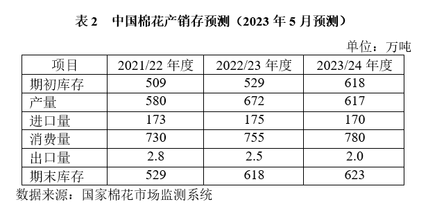 受今年以來國內(nèi)棉價走勢整體強(qiáng)于國際棉價,及人民幣匯率反彈等因素影響,內(nèi)外棉價差倒掛水平不斷回縮,至4月底扭轉(zhuǎn)長達(dá)14個月的內(nèi)外棉價差倒掛局面。截至2023年5月12日,內(nèi)外棉價差661元/噸,較4月中旬上漲1232元/噸??紤]到國際棉價相對較低及美國涉疆法案等因素影響,或?qū)⒋偈雇赓Q(mào)企業(yè)增購?fù)饷奚a(chǎn),我國棉花進(jìn)口量有望增加。