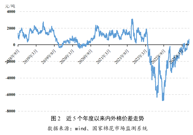 三、內(nèi)外棉價差倒掛情況出現(xiàn)扭轉(zhuǎn)