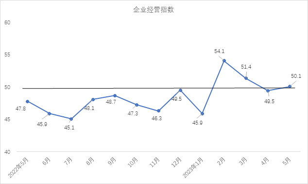 5月,企業(yè)經(jīng)營指數(shù)為50.1,較4月上升0.6,表明企業(yè)經(jīng)營效益有所改善。當(dāng)月,隨著國內(nèi)消費潛力逐步釋放,紡織服裝國內(nèi)零售增長較快。但消費市場恢復(fù)基礎(chǔ)還不牢固,企業(yè)盈利水平未完全恢復(fù),經(jīng)營效益有待繼續(xù)提升。從構(gòu)成企業(yè)經(jīng)營指數(shù)的分項指標(biāo)看,主營業(yè)務(wù)收入指數(shù)為50.5,較4月上升1.5;利潤總額指數(shù)為49.8,較4月上升0.8。