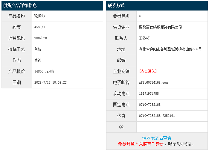 7月12日,襄樊富仕紡織服飾有限公司滌棉紗T80/C20 45S,報(bào)價(jià)為14800元/噸,實(shí)際成交價(jià)以協(xié)商為準(zhǔn)。[點(diǎn)擊查看詳情]
