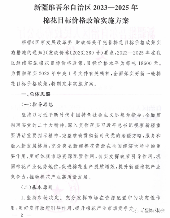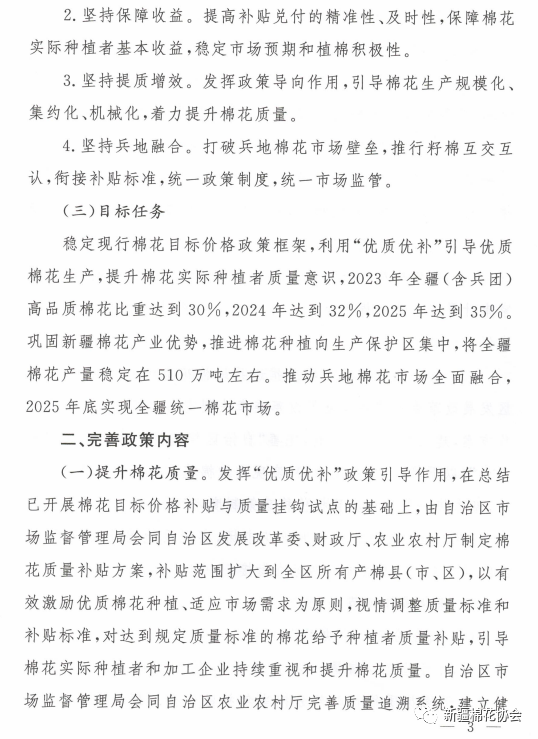 關(guān)于印發(fā)《新疆維吾爾自治區(qū)2023-2025年棉花目標價格政策實施方案》的通知