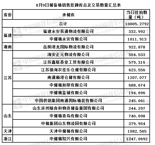 附件:1、8月9日上市銷售儲備棉數(shù)據(jù)明細(xì)表(進(jìn)口棉)