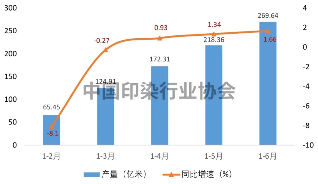 2023年上半年印染行業(yè)規(guī)模以上企業(yè)印染布產(chǎn)量及增速變化情況