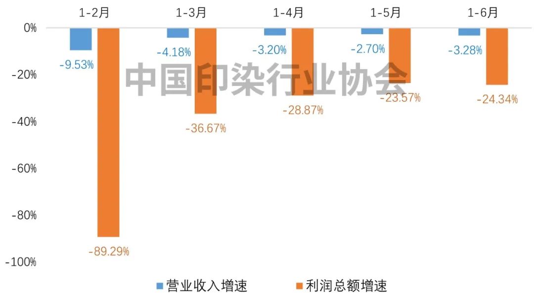 2023年上半年印染行業(yè)規(guī)模以上企業(yè)營(yíng)業(yè)收入和利潤(rùn)總額增速變化情況