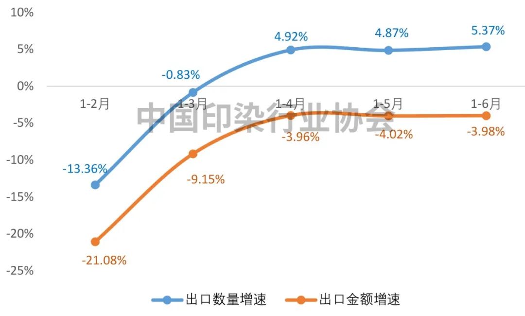 2023年上半年印染八大類產(chǎn)品出口增速變化情況