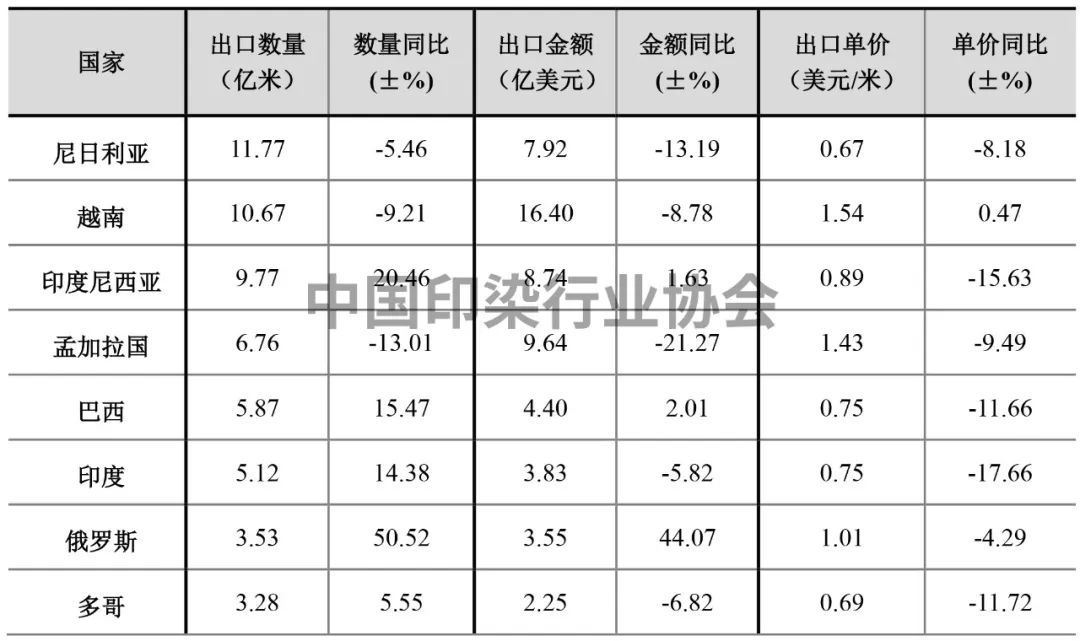 2023年上半年我國(guó)印染八大類產(chǎn)品出口部分國(guó)家情況