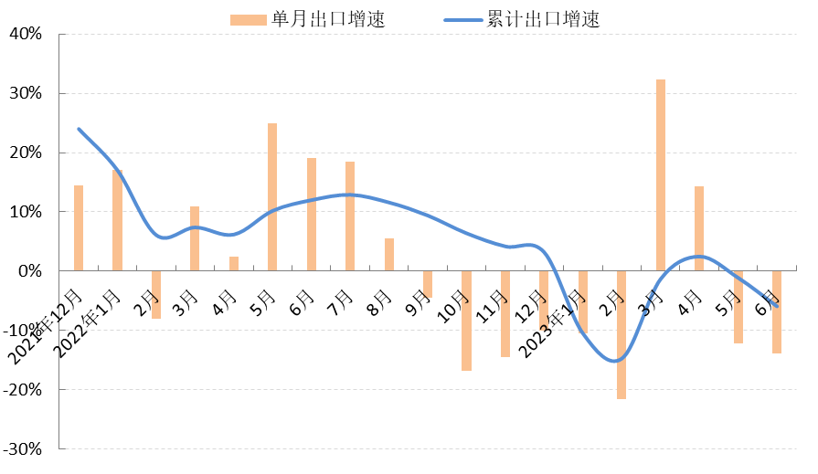 圖3 2023年1-6月服裝及衣著附件出口情況
