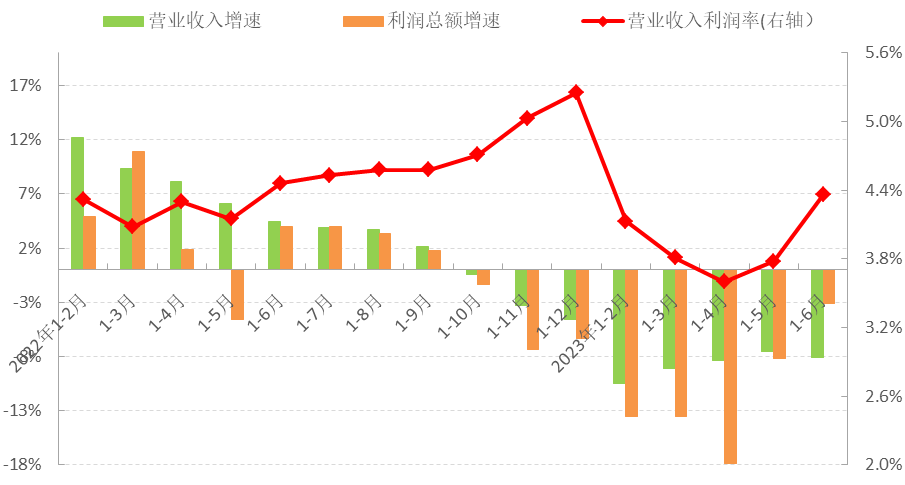 圖4 2023年1-6月服裝行業(yè)主要效益指標情況