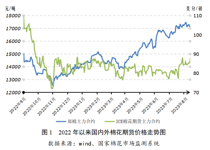 2023年7月中旬以來,北半球棉花生長仍處關(guān)鍵期,天氣變化持續(xù)擾動(dòng)棉花行情。隨著國內(nèi)棉市政策“組合拳”落地,市場供應(yīng)偏緊預(yù)期緩解,國內(nèi)棉價(jià)止?jié)q回落。8月中旬后,北半球新棉上市時(shí)間臨近,下一步棉花行情走勢如何,本期月報(bào)將進(jìn)行探討。