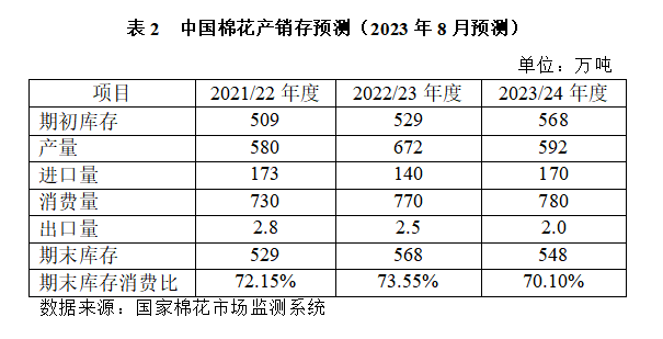 (三)2023年度中國棉花產(chǎn)銷存預(yù)測