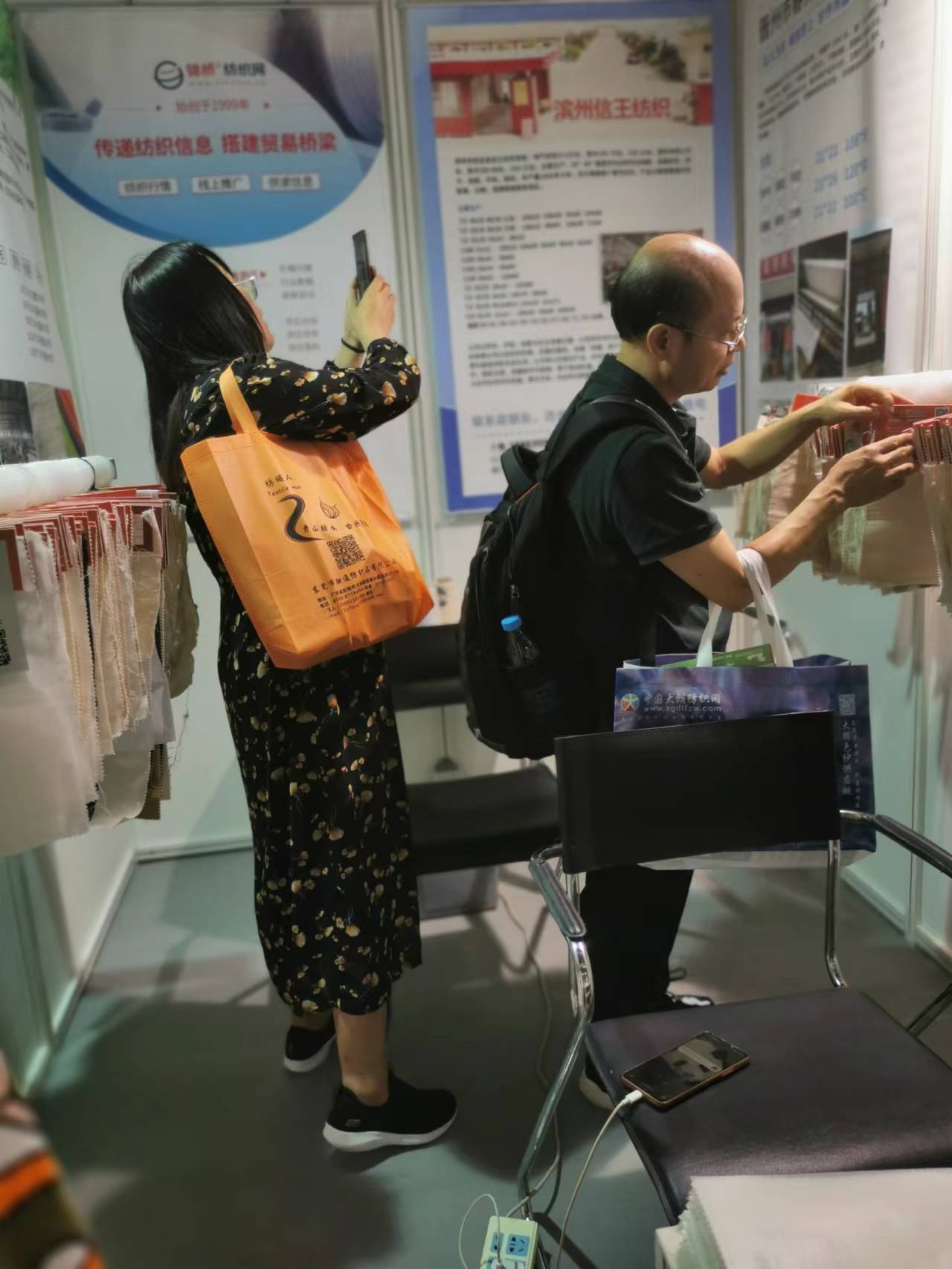 錦橋紡織網(wǎng)作為專業(yè)網(wǎng)絡(luò)媒體合作單位參加本次展會(huì)。此次展會(huì)昌華、魯豫、鈺坤、藤譚等企業(yè)現(xiàn)場(chǎng)送樣品和產(chǎn)品目錄代展,現(xiàn)場(chǎng)到展位采購(gòu)商以采購(gòu)滌棉紗、色紗、再生棉、服裝面料、口袋布、床品面料、勞保工裝面料、高支紗面料為主,部分坯布采購(gòu)商指定區(qū)域?yàn)楹颖笔仪f。