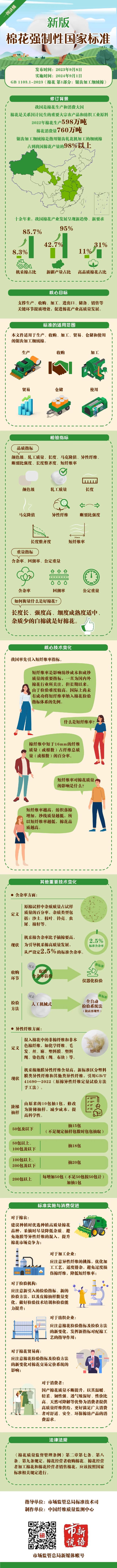 近日,市場(chǎng)監(jiān)管總局(國(guó)家標(biāo)準(zhǔn)委)發(fā)布《棉花第1部分:鋸齒加工細(xì)絨棉》(GB1103.1-2023)強(qiáng)制性國(guó)家標(biāo)準(zhǔn),該標(biāo)準(zhǔn)委托全國(guó)纖維標(biāo)準(zhǔn)化技術(shù)委員會(huì)起草,將于2024年9月1日實(shí)施。