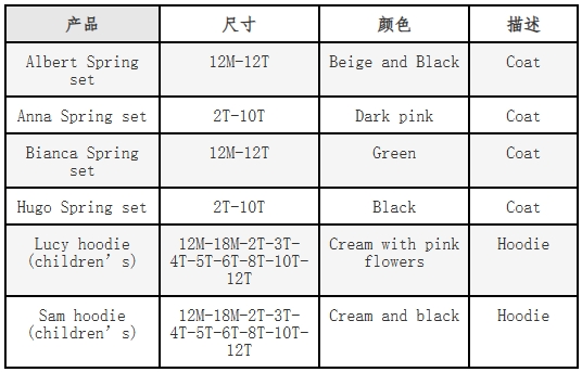 此次涉及產(chǎn)品為多款腰部帶抽繩的兒童戶外上衣。具體召回產(chǎn)品信息如下: