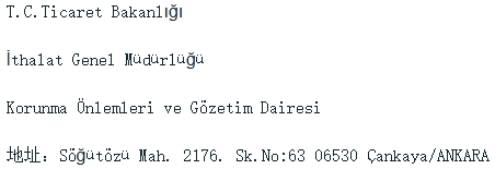調(diào)查機(jī)關(guān)(土耳其貿(mào)易部)聯(lián)系方式: