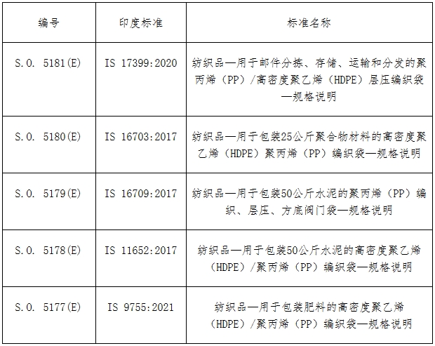2023年12月6日,印度中央政府與印度標(biāo)準(zhǔn)局(BIS)協(xié)商后,發(fā)布一份關(guān)于下表所列五種聚合物產(chǎn)品質(zhì)量控制令(QCO)的公報(bào)。