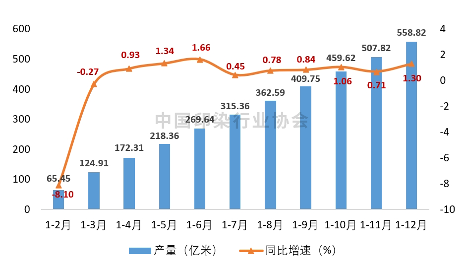 2023年1-12月規(guī)模以上印染企業(yè)印染布產(chǎn)量及增速情況
