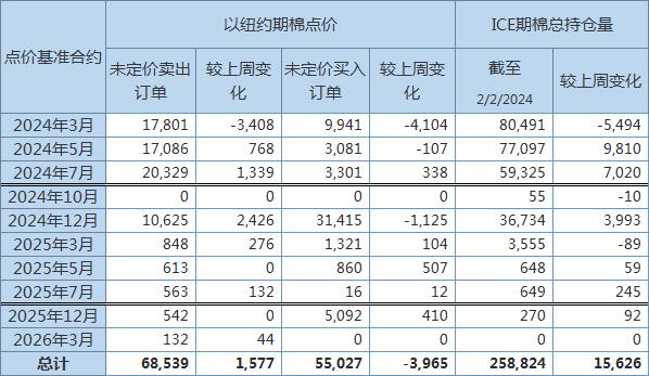 美國商品期貨交易委員會(CFTC)公布,截至2月2日,以ICE期棉2403合約點價未定價賣出訂單(UnfixedCallSales)較前周減少3408手至17801手。