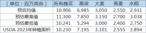 據(jù)外電3月25日消息,美國(guó)農(nóng)業(yè)部(USDA)將于北京時(shí)間3月29日(周五)零點(diǎn)公布種植意向報(bào)告,分析師平均預(yù)估,報(bào)告將顯示,2024年美國(guó)棉花種植面積料為1090.6萬(wàn)英畝,預(yù)估區(qū)間為1024.1-1130萬(wàn)英畝。2023年種植面積為1023萬(wàn)英畝。