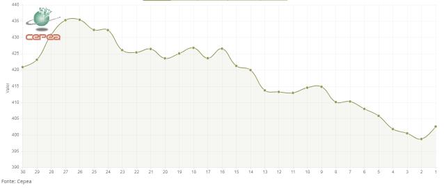 據(jù)外電4月5日消息,4月5日巴西CEPEA/ESALQ棉花價格指數(shù)報每磅79.48美分,較前一日下跌1.33%。