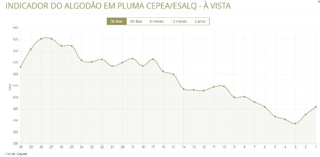 據(jù)外電4月8日消息,4月8日巴西CEPEA/ESALQ棉花價(jià)格指數(shù)報(bào)每磅80.71美分,較前一日上漲0.82%。
