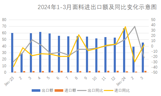 2024年1-3月面料出口增幅收窄