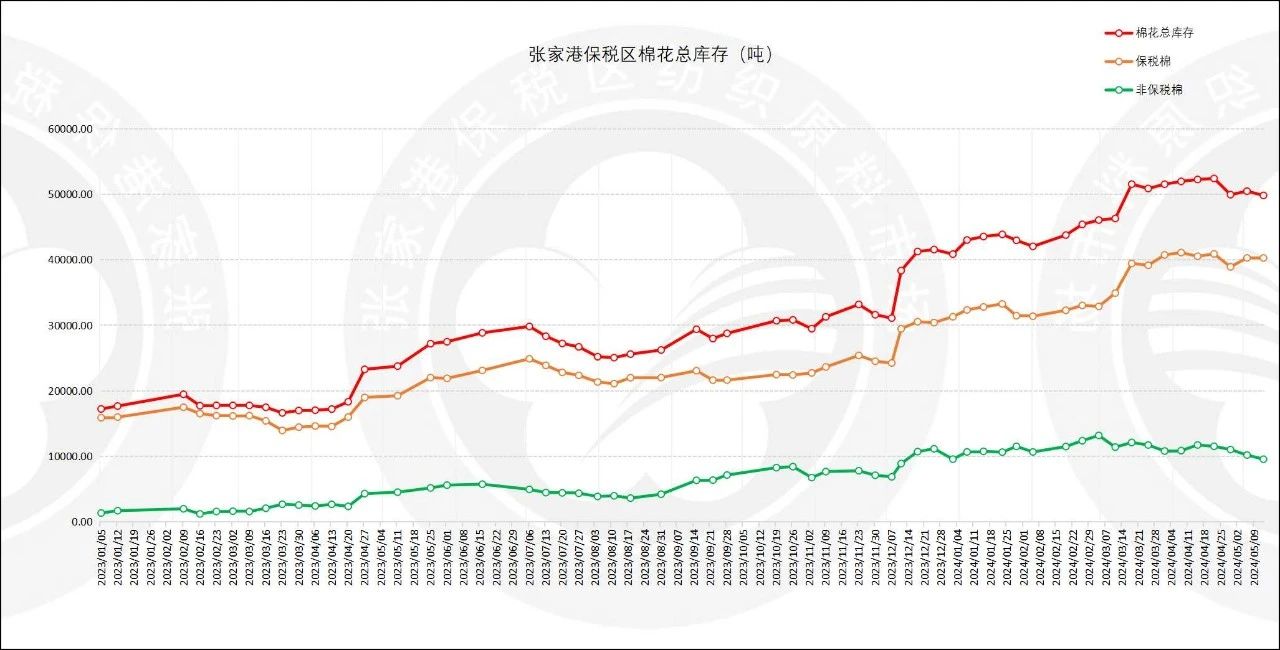 據(jù)張家港保稅區(qū)紡織原料市場(chǎng)統(tǒng)計(jì),截至2024年5月13日,張家港保稅區(qū)棉花總庫(kù)存4.98萬(wàn)噸,環(huán)比減少1.29%;其中保稅棉4.03萬(wàn)噸,環(huán)比減少0.01%,非保稅棉0.95萬(wàn)噸,環(huán)比減少6.32%。從進(jìn)口棉來(lái)源地看,張家港保稅區(qū)棉花庫(kù)存中:美棉占比40.87%,環(huán)比增加2.2個(gè)百分點(diǎn);巴西棉占比26.91%,環(huán)比減少0.31個(gè)百分點(diǎn);印度棉占比0.32%,環(huán)比減少0.66個(gè)百分點(diǎn);其他國(guó)家及地區(qū)占比29.05%,環(huán)比減少1.23個(gè)百分點(diǎn)。當(dāng)周進(jìn)口棉進(jìn)出入庫(kù)動(dòng)態(tài)變化情況,張家港保稅區(qū)棉花庫(kù)存中,出庫(kù)2575.57噸,入庫(kù)1978.75噸,凈入庫(kù)(-596.82)噸。