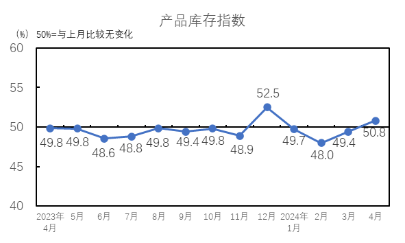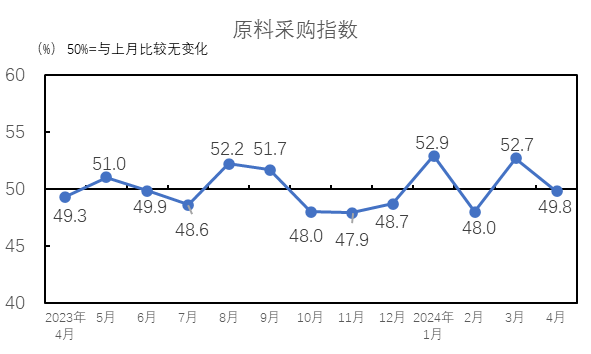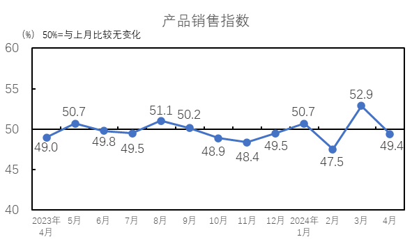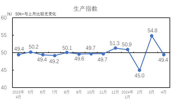 中國制造業(yè)采購經(jīng)理指數(shù)連續(xù)兩個月擴張。國家統(tǒng)計局發(fā)布的2024年4月中國制造業(yè)采購經(jīng)理指數(shù)為50.4%,較3月下降0.4個百分點。制造業(yè)采購經(jīng)理指數(shù)連續(xù)兩個月位于擴張區(qū)間,制造業(yè)繼續(xù)保持恢復發(fā)展態(tài)勢,我國經(jīng)濟景氣水平總體延續(xù)擴張。
